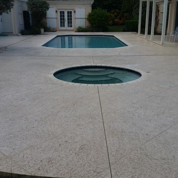 They grinded down the remains of a handful of existing cinder blocks (tripping hazards), filled in a large hole, poured a small slab in place of existing pavers and then resurfaced the entire lot with Spray Deck to give it a uniform look. Jim was very responsive during the entire process-- from the quote to how they will perform the work, to keeping in touch with each day they planned to be there and what time. They delivered on all accounts. We are so pleased with the experience working with them. The finished product is beautiful. I would recommend them to anyone looking for cement/resurfacing work!